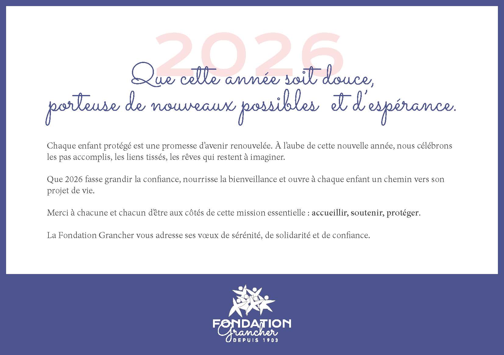 La Direction Générale de la Fondation Grancher vous adresse ses vœux de sérénité, de solidarité et de confiance.